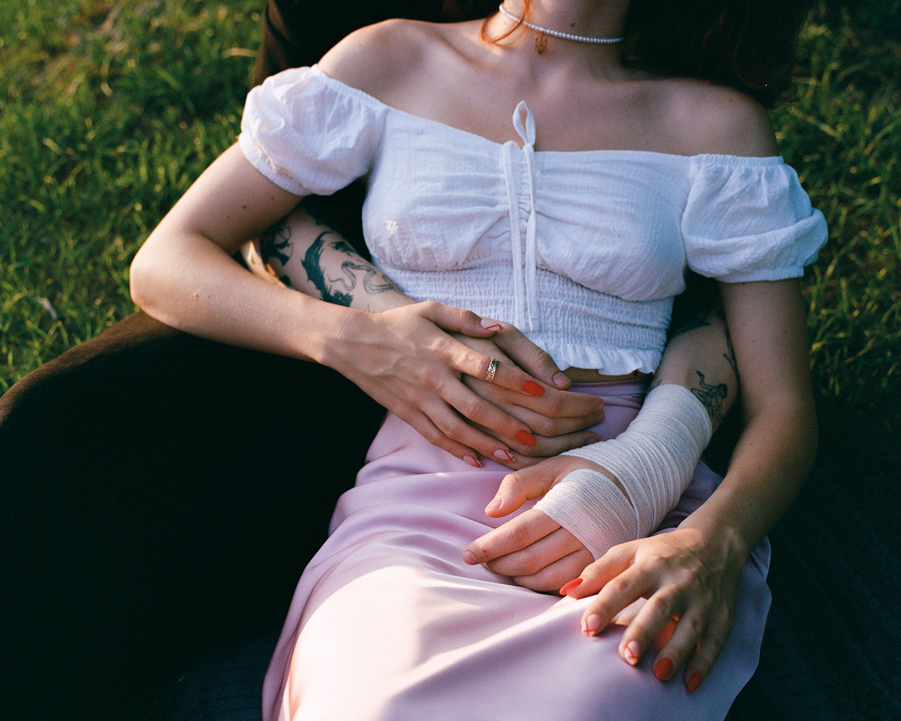 “Spero che la tua famiglia sia al sicuro”. Ho sentito queste parole tante volte dall’inizio dell’invasione russa su larga scala, e ancora non so come rispondere. Che cos’è la sicurezza in un paese in guerra? Sono nata in Ucraina, mi sono trasferita nove anni fa in Polonia e poi in Germania. Mai come ora ho sentito il bisogno di tornare: vedere come è cambiata la mia terra, sfidare l’immagine riduttiva degli ucraini come sole vittime. Cerco senso nelle immagini: un’auto distrutta al fronte, le trincee dove si addestrò mio padre, un abito da sposo e scialli del lutto al mercato, la foto di un’amica d’infanzia tra i caduti. La morte è ovunque, eppure anche la vita: spiagge affollate, neonati, pulcini, amore, gioia, bellezza. Insicura per i missili, sicura perché è casa mia.